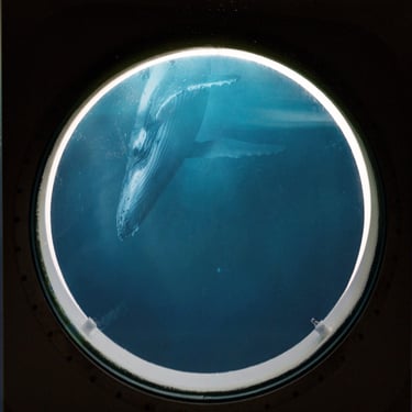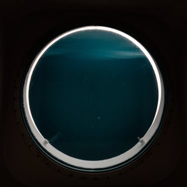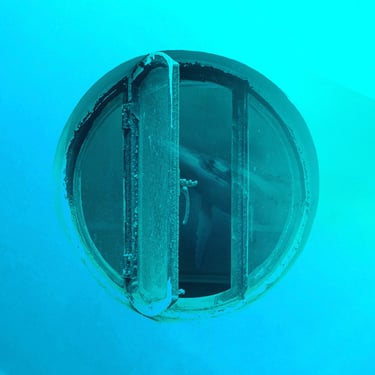 Submechanophobia is the fear of man-made objects underwater, and I wondered if some of this emotional response was something I could work with, to achieve the effect I wanted with this artwork. I started experimenting with ship's portholes and the effect of using them to frame the scene.