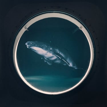 At this time I didn't have access to photoshop, so I would use a combination of free apps including Rookie Cam on my phone. This would involve manually exporting images at each stage, then reimporting them to overlay or add a new effect. Initially, I played around with overlaying copyright-free images and while I created something interesting with some light effects, I decided that I wanted to pursue the idea of seeing the whale through the window of a man-made structure.