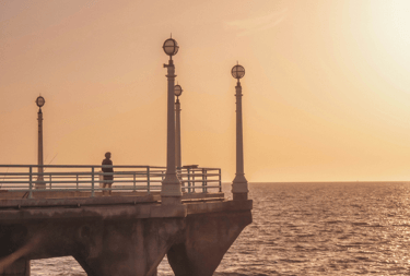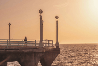 Finally, I chose an image of a pier that had a person on it, looking into the distance, because as the only sign of life in the rest of the image, I wanted this figure to be a stand-in for the viewer; like this figure we are also looking out into this world, and I wanted to raise the question of our own reactions, as active participants in this piece. We, the viewer, are to our world/real life what this image of a viewer is to the world in the art.