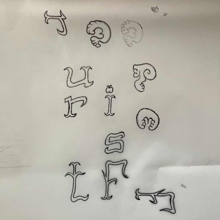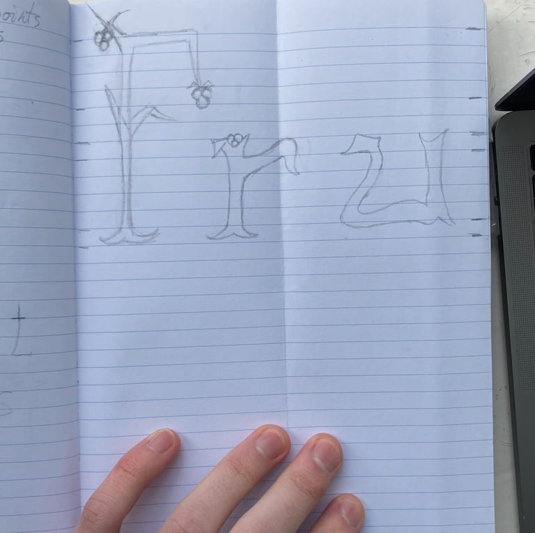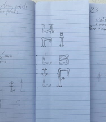 For the next phase, I had to work out some consistent designs for the type, based on the ideas that I'd previously sketched.