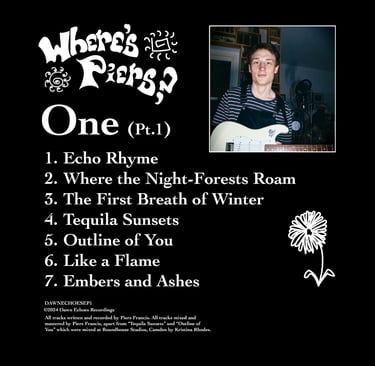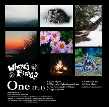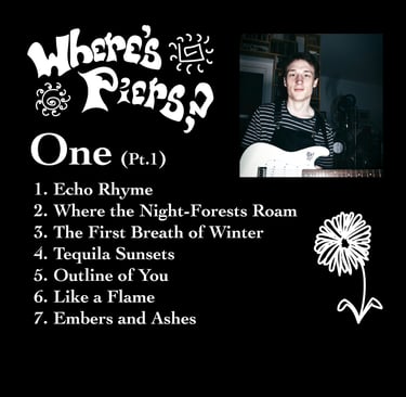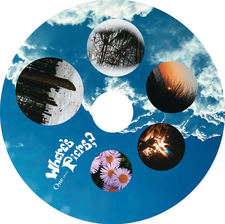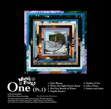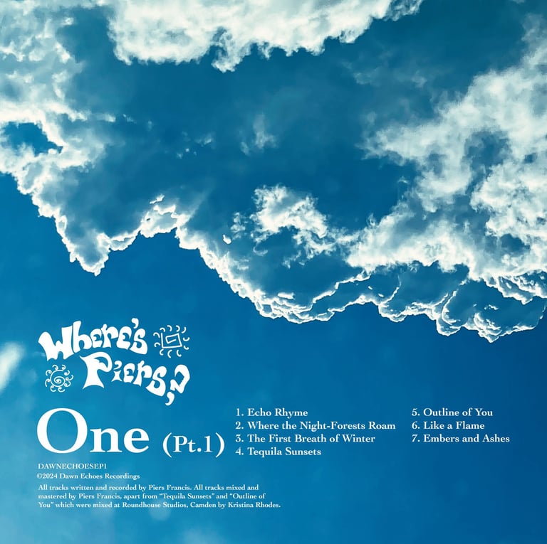 I added my Logo over the speaker cone of my monitor, echoing its shape. I also placed the name of the EP below to the left, using a simple serif font for its honesty and made the "pt 1" smaller to emphasise the focus: "One", with the principles of visual hierarchy.