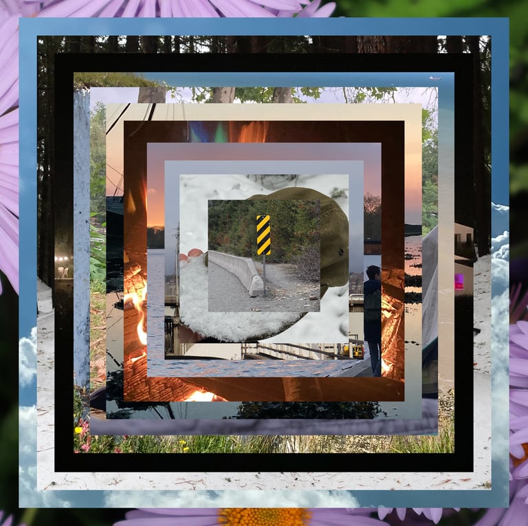 My third idea was a development of the idea to represent my own journey that led to the making of the record, so I took a number of photos from the previous couple of years, insetting them into each other as frames, or moments, to create a sort of tunnel through time representing the trajectory of my actions, leading to a road sign out in Canada which represented the moment of "stop, turn back" that I came to before returning here, to create the record. Ultimately, while they were all visually striking, I decided that the third idea felt the most like the journey that I went on to make the record, so I went with that one.